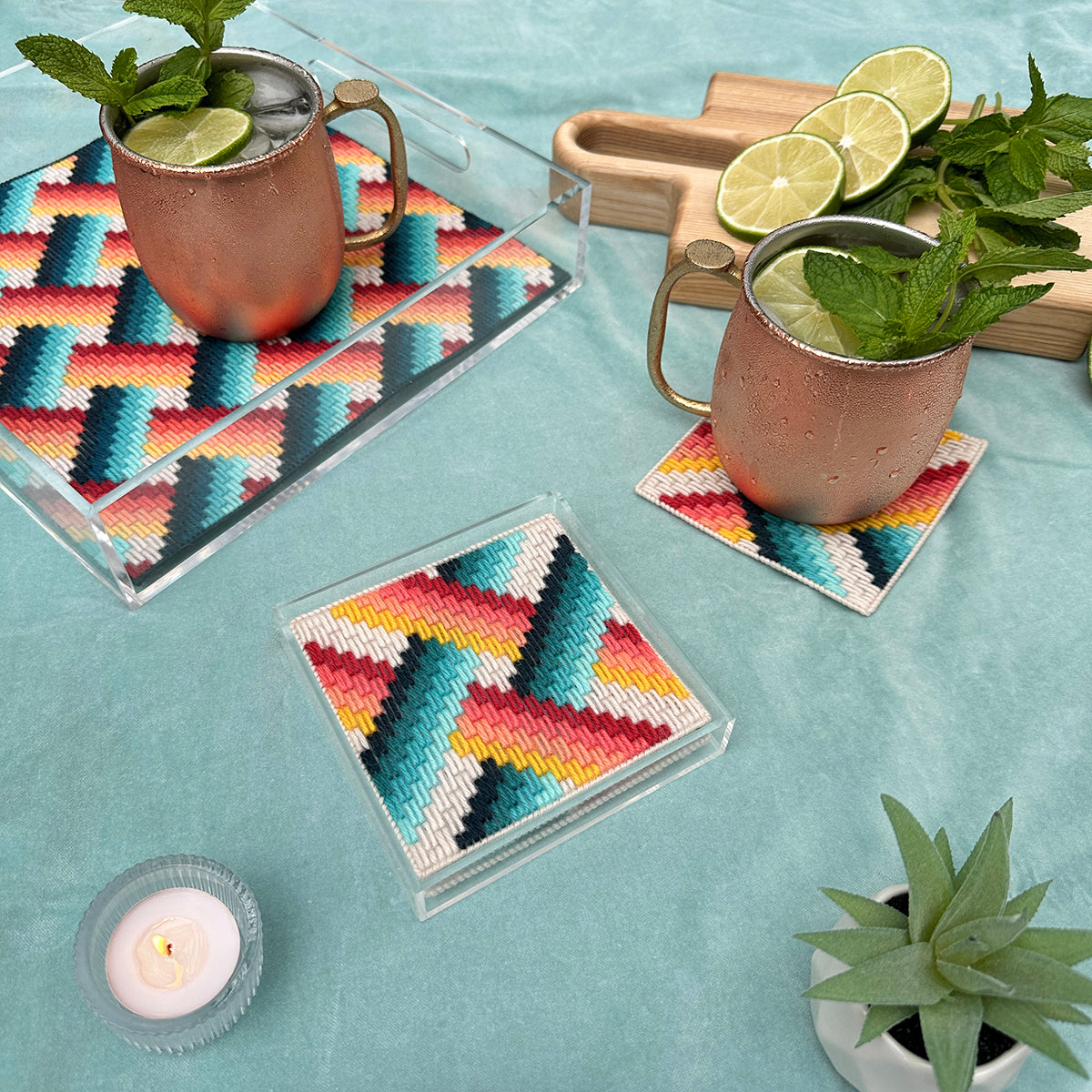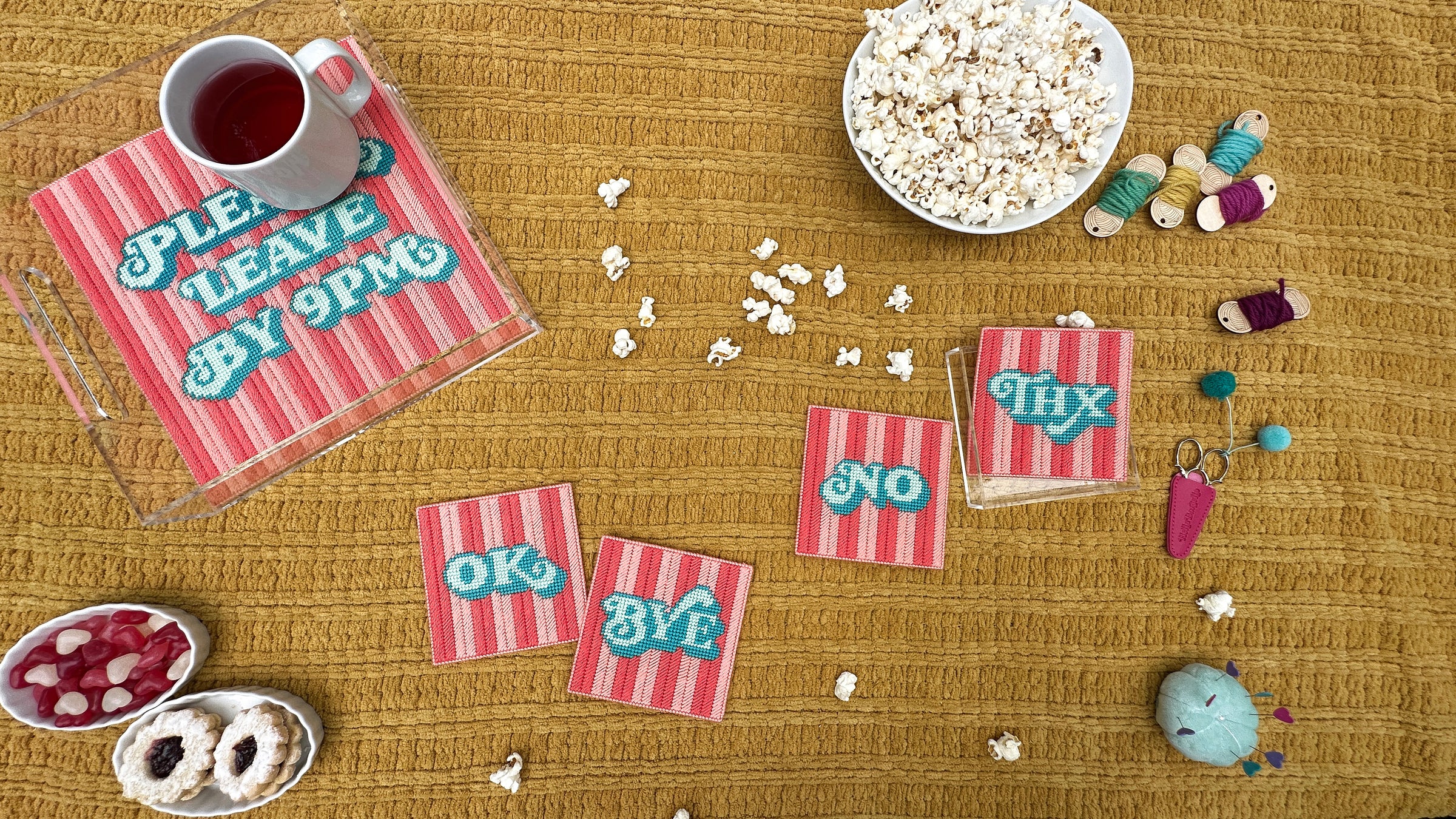 A forgotten needlecraft from the 60's and 70's. Just one simple stitch repeated in eye-popping patterns and bold colors. Super easy to learn, relaxing to do, and sooo satisfying. Your new favorite craft that you didn't even know was missing from your life.