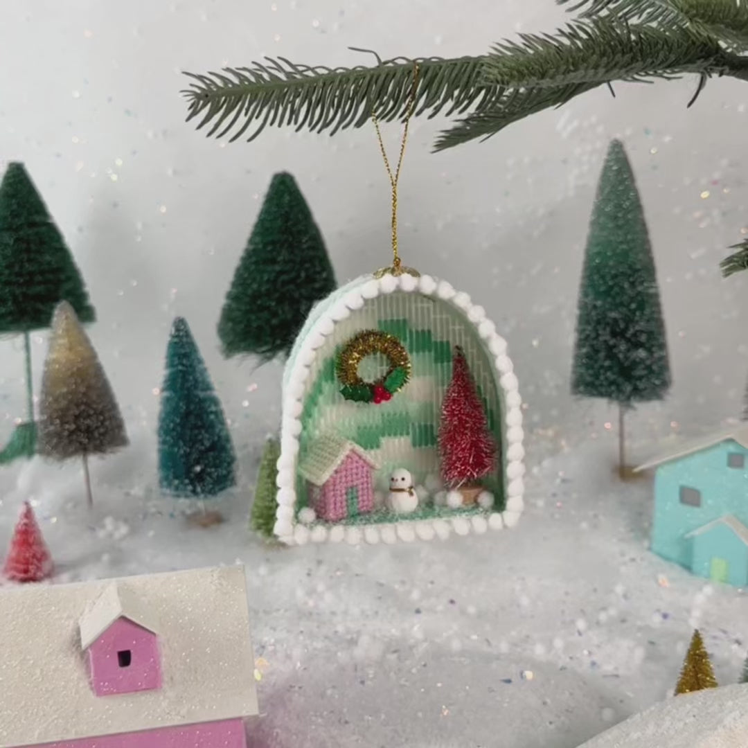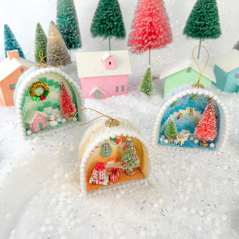A luxury gift set to make 3 bargello diorama ornaments! They're sparkly, tiny, and irresistably cute. Mini details, big holiday vibes.