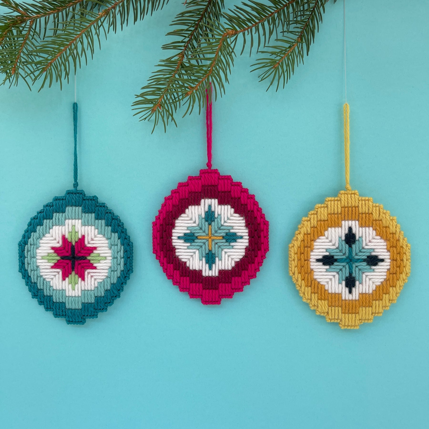 Add some bright and happy bargello flair to your holiday decor with our 2021 Holiday Ornament Kit! Make up to six coordinating bargello ornaments in mix-and-match shades of aqua, red, gold and white.