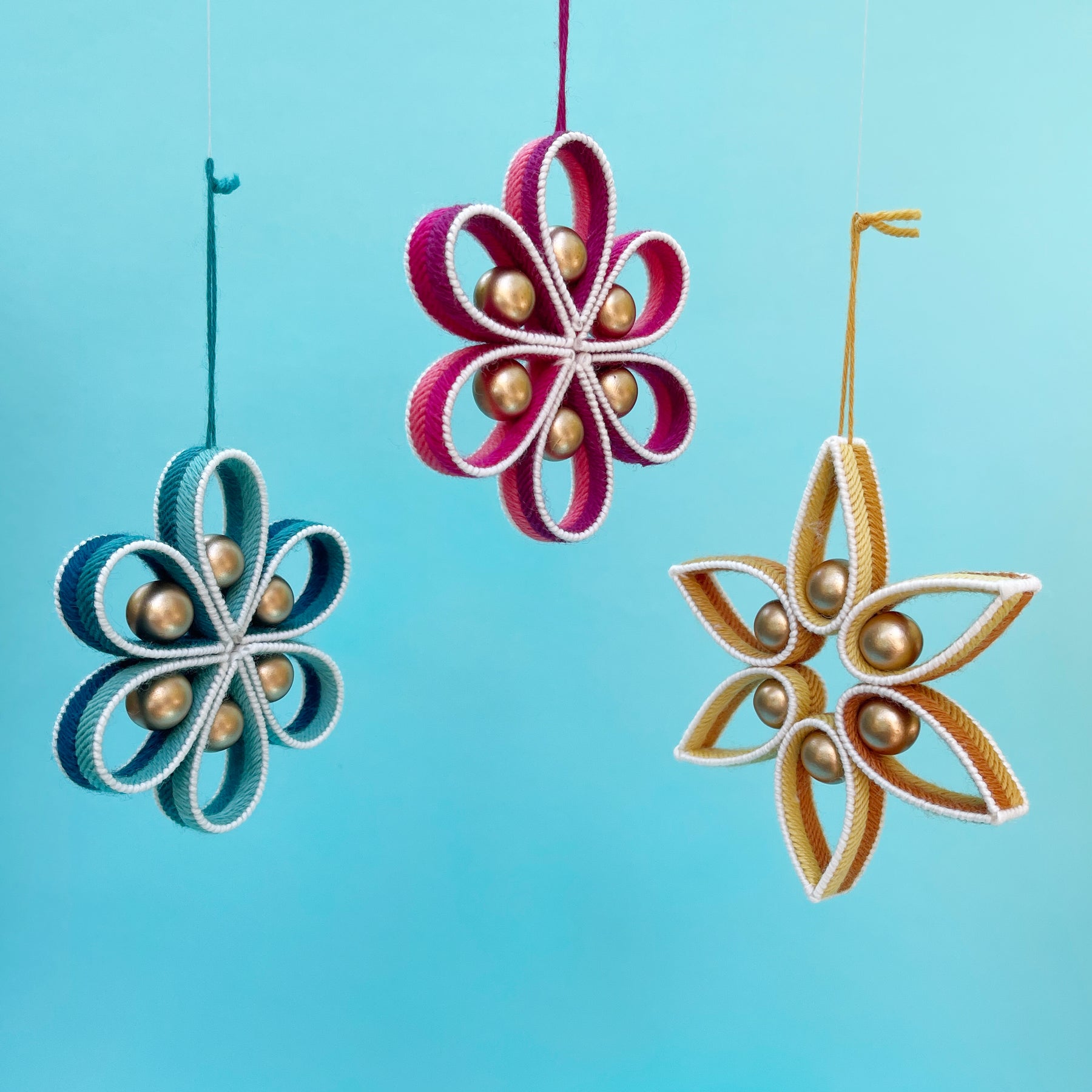 This kit includes materials to make 3 large ornaments (flower or star shape) and 3 small ornaments (single teardrop shape).