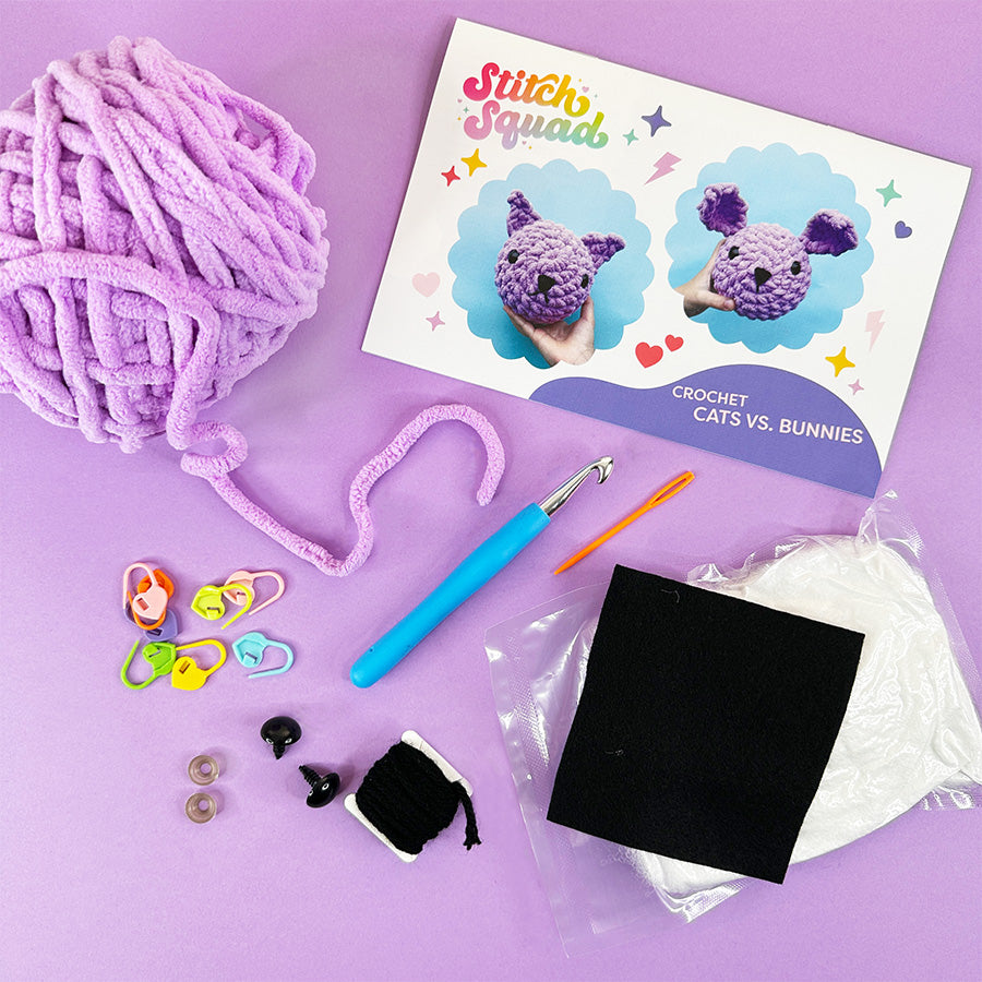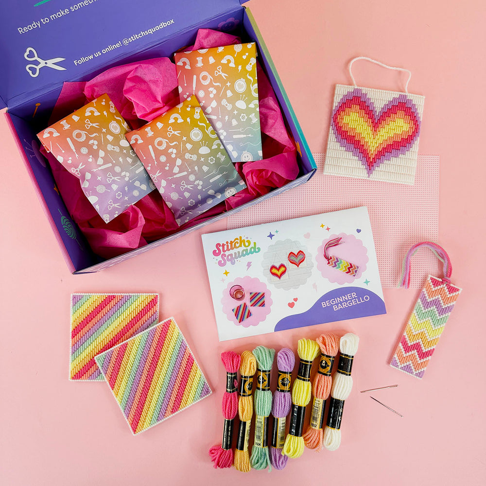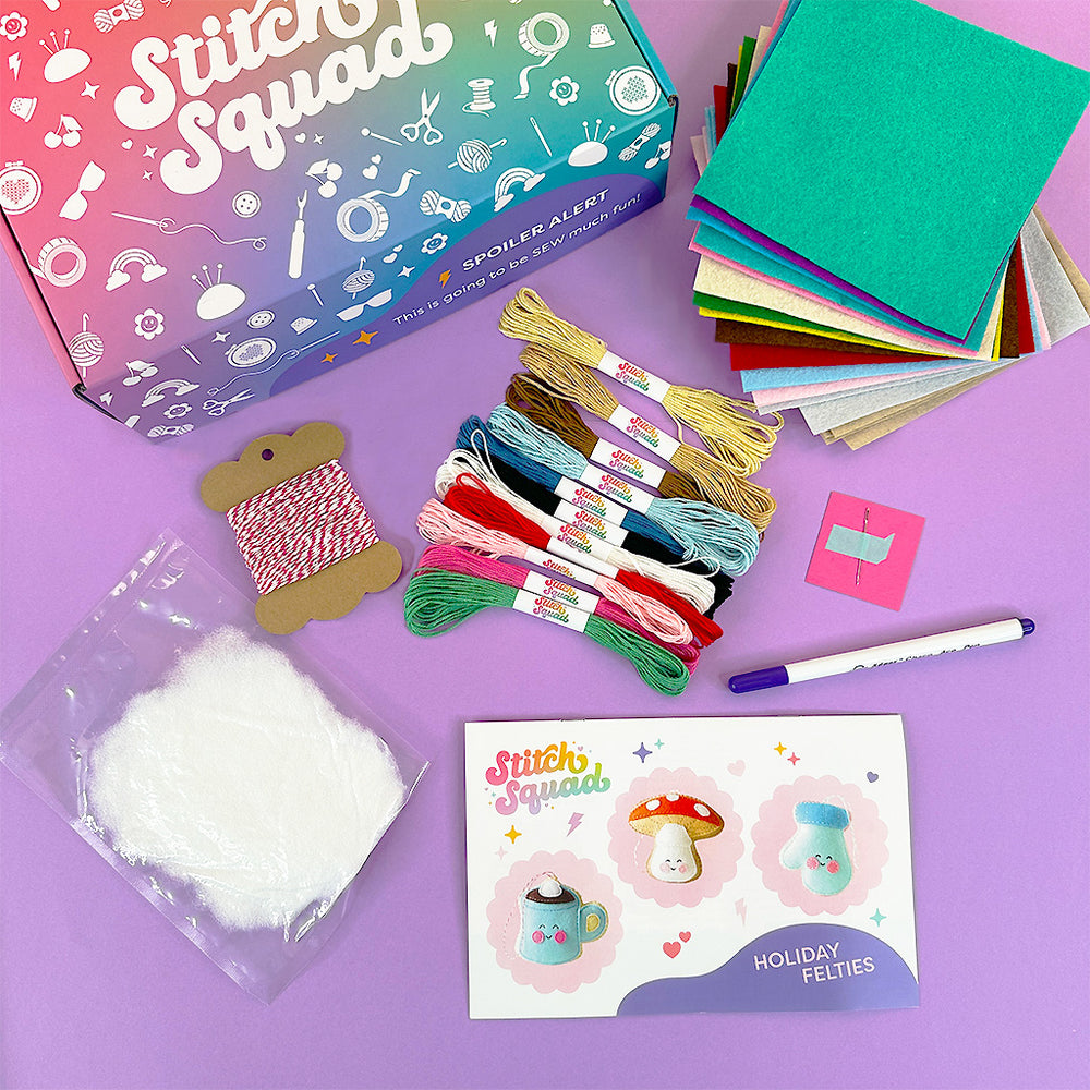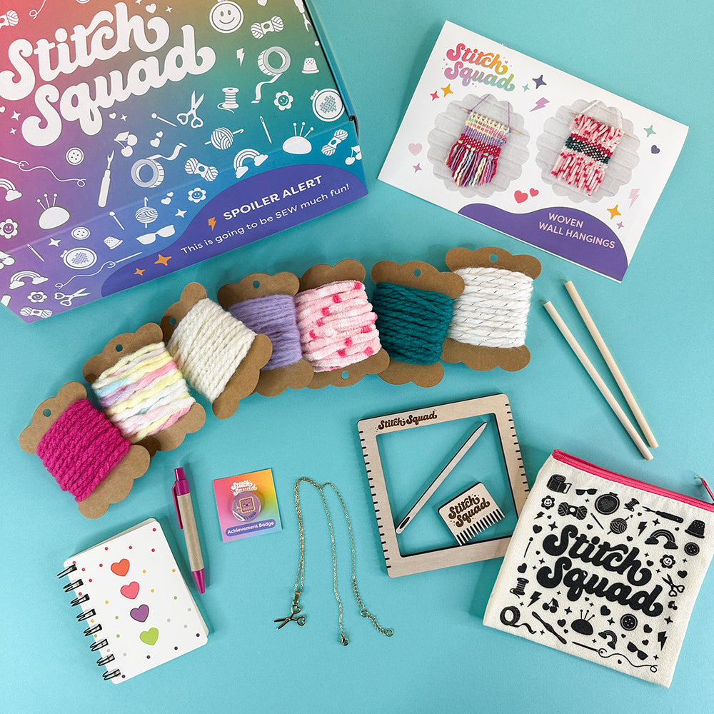 Cute craft boxes jam-packed with projects and supplies designed to teach fiber crafts to kids! Specially made for kids and tweens who love creativity and cuteness, Stitch Squad is a colorful and happy craft box exploding with inspiration! Each box teaches a different fiber craft and includes everything needed to make fun projects, plus a bundle of cute crafty surprises.