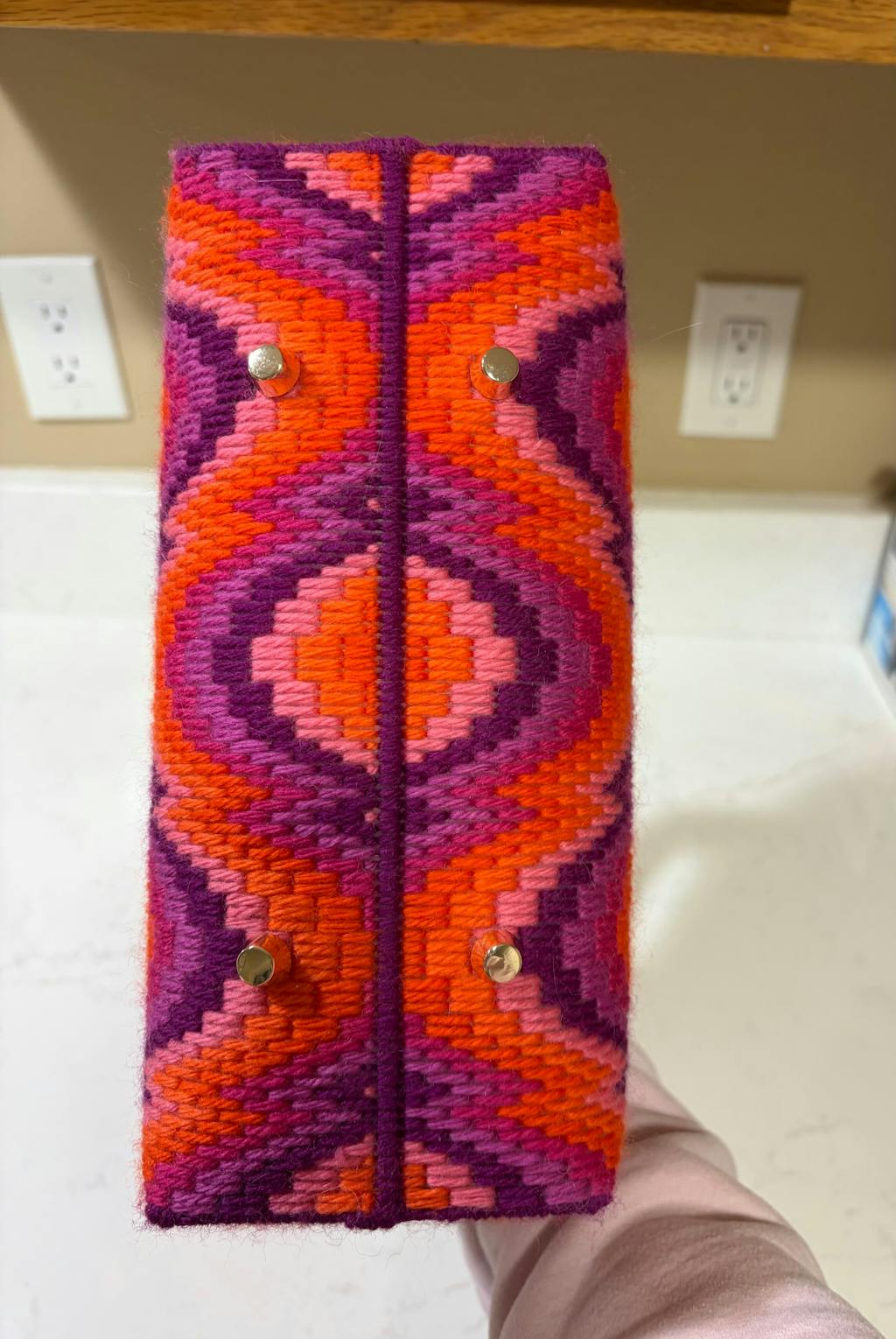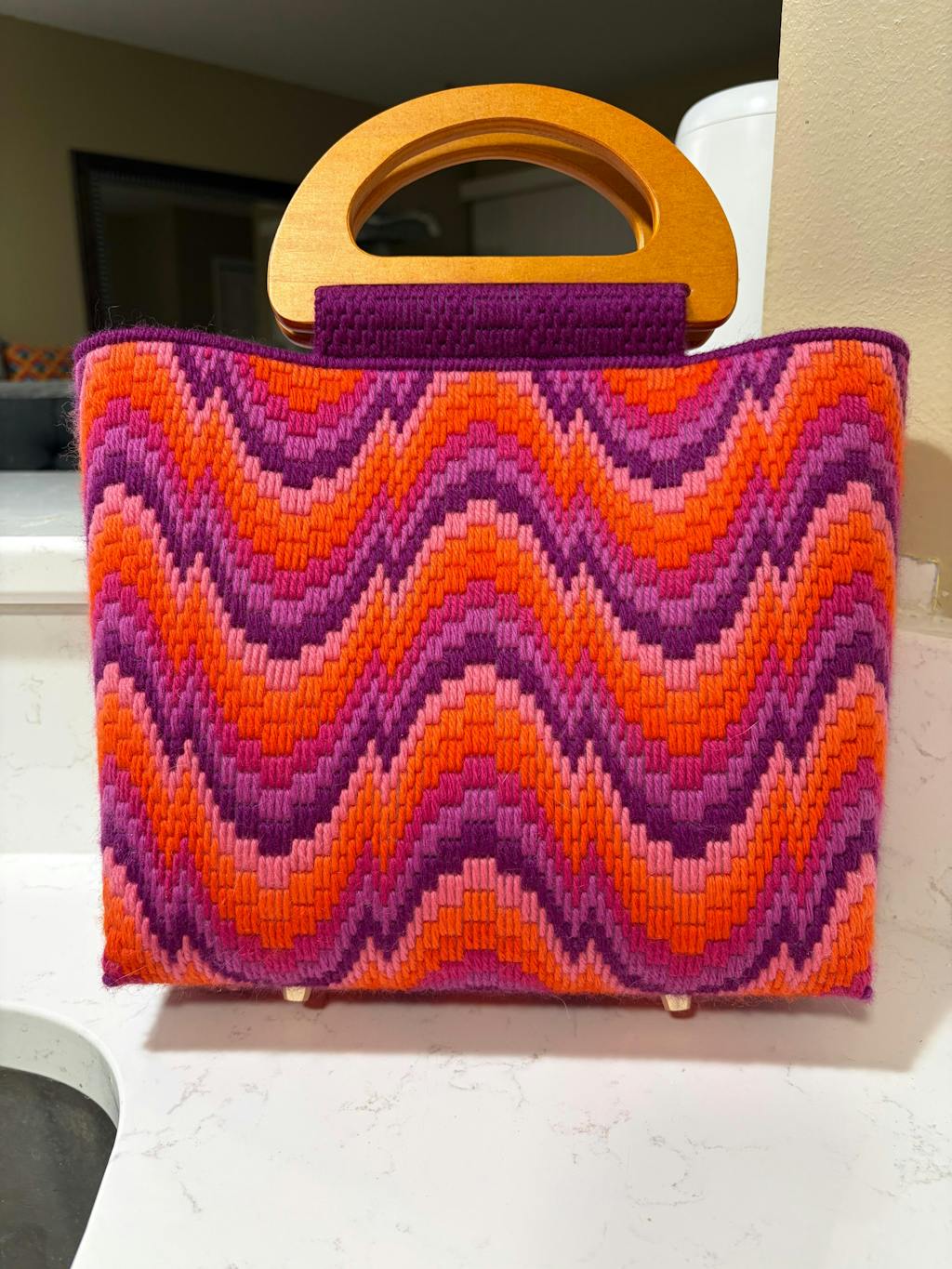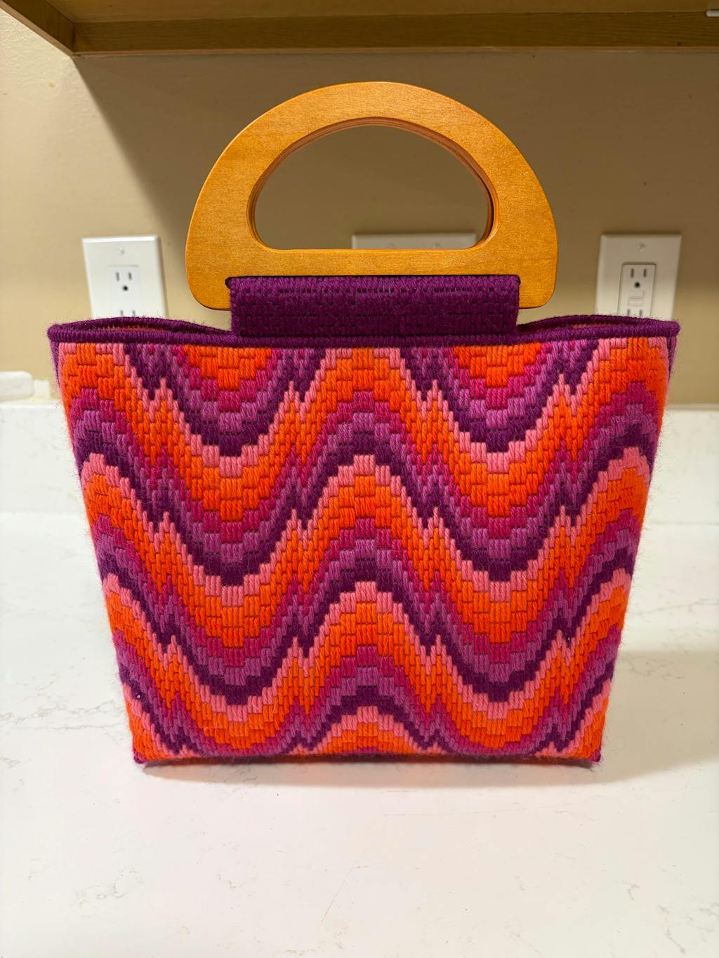 I absolutely ❤️❤️❤️ this bag! I can't stop looking at it, I just think it's so stunning. This was the most intricate project I've made so far (I started bargello last June), and I've purchased the Dreamweaver Tote patterns for two more designs! I also added feet to the bottom. The Online tutorial is AMAZING! I suggest that for everyone!